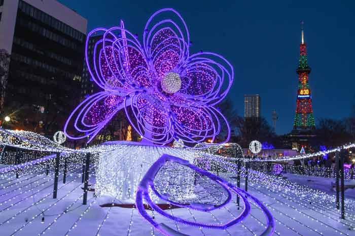 雪とイルミネーションの冬らしいクリスマス